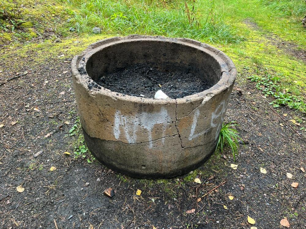 Tulentekopaikkana toimiva kaivonrengas on myös halkeillut ja paikalta on hävinnyt grilliritilä. Tulentekopaikan viereen asennetaan betoninen pieni puuvarasto, jottei palavaa materiaalia tarvitse säilyttää laavun sisällä.