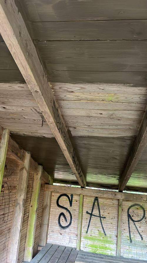 Kuvat ja yksityiskohdat tapahtumapaikalta 31.8.2024 saatu hämähäkkejä ja maalinroiskeita uhmaten paikalla olleelta yhdistyksen puheenjohtajalta Nina Pulliselta.